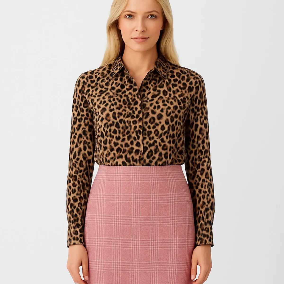 طرح: پارچه چهارخانه (Plaid) با طرحی ریز و کلاسیک.